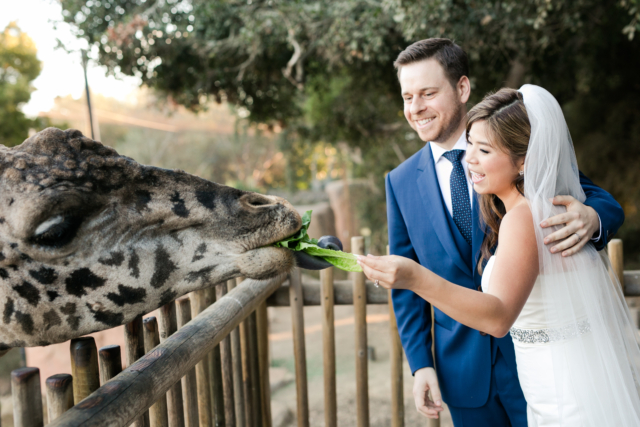 We knew we were going to be in for something special when Jen and Jeff told us right off the bat that their wedding hashtag was #bagelmeetsbao. Residing out of Los Angeles, these two wanted a fun and unique wedding experience for their guests and decided that the Santa Barbara Zoo would be the perfect location for their special event. Jen and Jeff started their day at a beautiful Airbnb in Carpinteria, CA where they had their first look and took photos with their bridal party. Soon after they headed to the zoo where their guests were welcome to explore before attending the ceremony. Jen and Jeff exchanged their vows under the chuppah before being announced as Mr. and Mrs. Jeffrey Meyerson and soon whisked away to enjoy an opportunity to feed the giraffes. During the cocktail hour, their guests were surprised to find a very appropriately dressed penguin! Once the reception was underway, Jen and Jeff had one last surprise for their guests – lions. The lion dancers came and put on a riveting performance filled with acrobatics and heart-thrumming percussion from the drums and cymbals. After wishing the bride and groom a prosperous marriage, they cleared away to make room for all the guests to jump onto the dancefloor – and we mean ALL the guests! The reception ended all too soon, but fortunately Jen and Jeff had an after party planned at The Neighborhood Bar a few miles away. Working with Jen and Jeff was a joyous, laughter-filled journey and we are so appreciative to have been along for the ride!